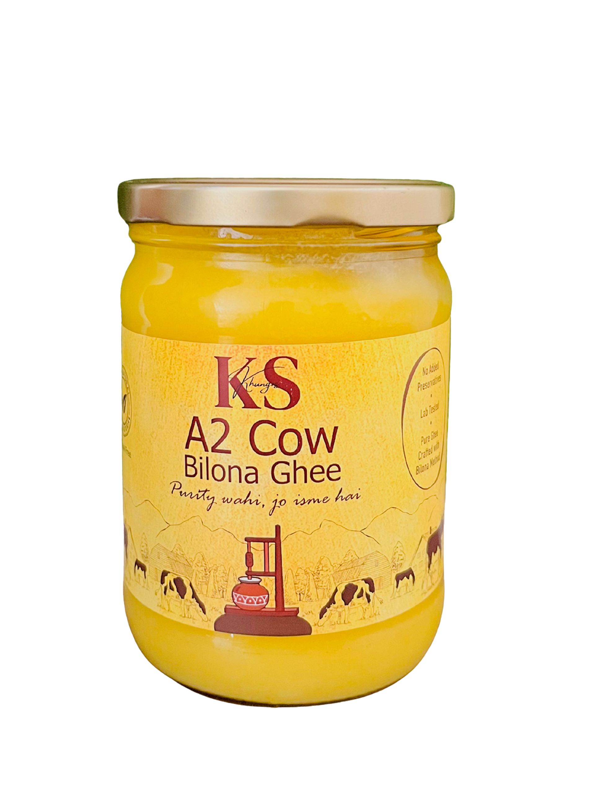Experience the purity of tradition with Khungrs A2 Cow Ghee, made from the milk of desi (indigenous) cows using the authentic Bilona method. Every drop of this golden ghee is hand-churned with care to preserve its rich aroma, natural flavor, and powerful nutrition.