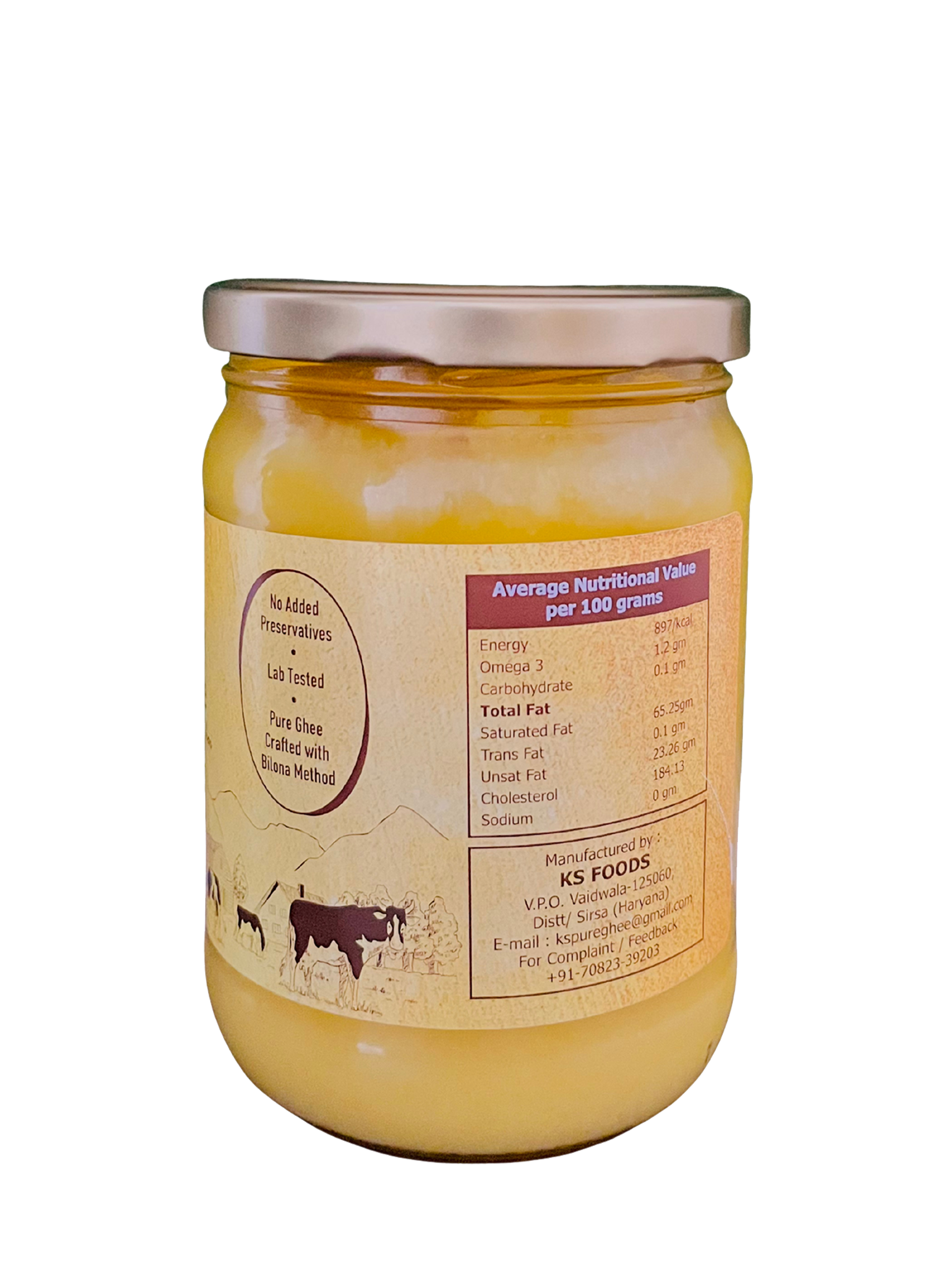 Our ghee is free from preservatives, chemicals, and artificial flavors, ensuring you get the purest form of nourishment — just like it’s meant to be. Rich in Omega-3 fatty acids, vitamins A, D, E & K, and good cholesterol, it boosts immunity, improves digestion, and adds a delightful taste to every meal.