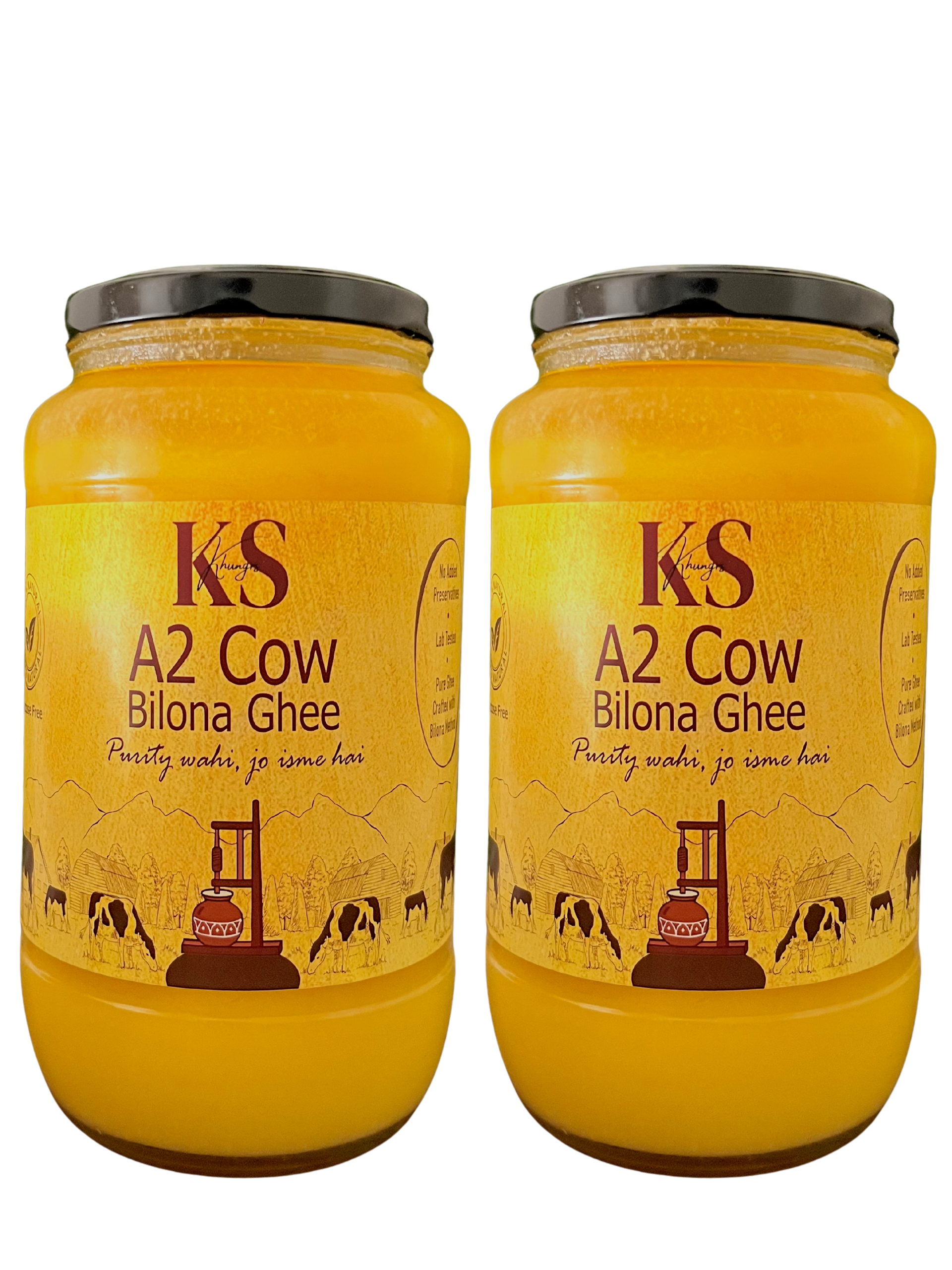Experience the purity of tradition with Khungrs A2 Cow Ghee, made from the milk of desi (indigenous) cows using the authentic Bilona method. Every drop of this golden ghee is hand-churned with care to preserve its rich aroma, natural flavor, and powerful nutrition.